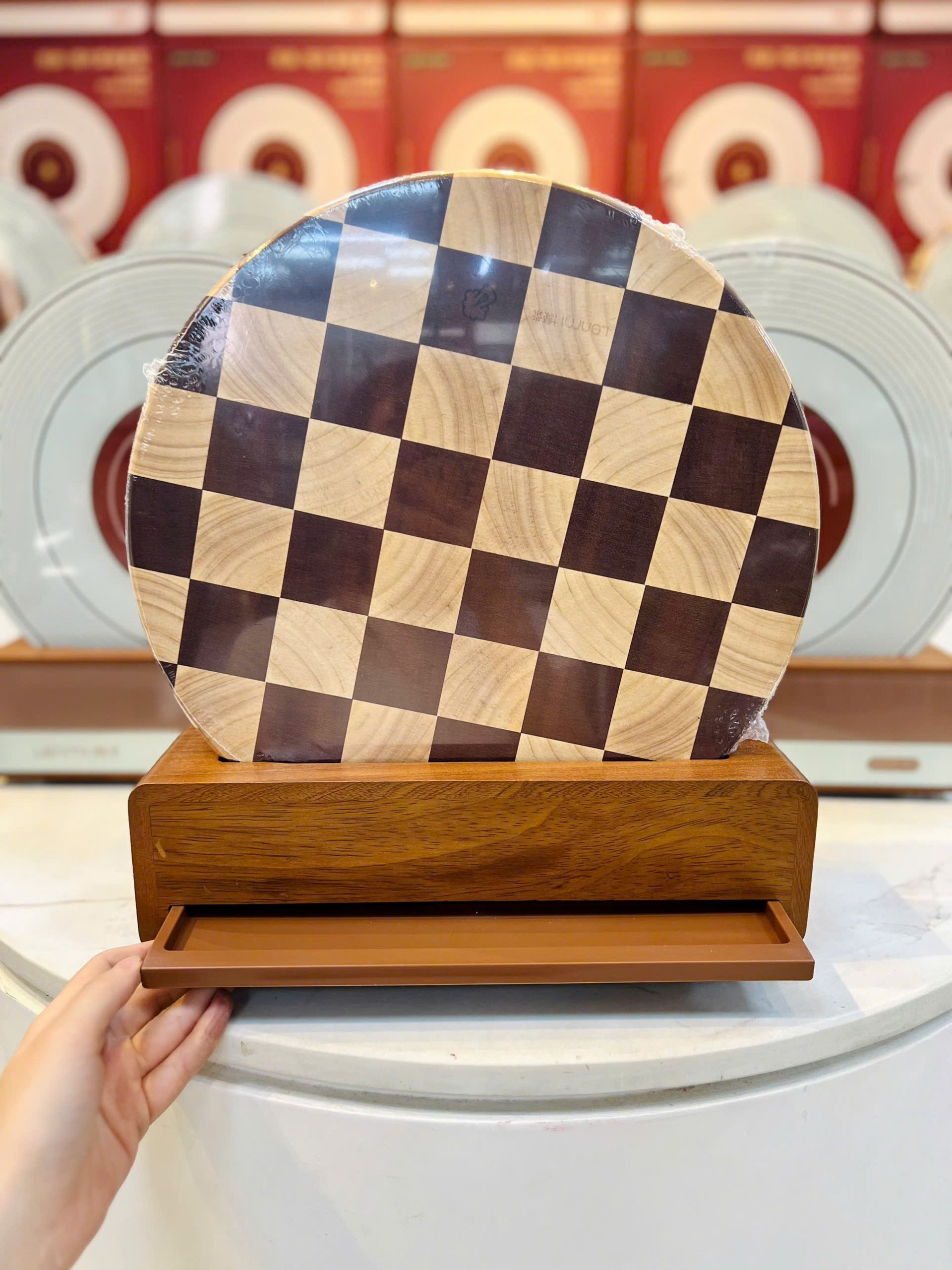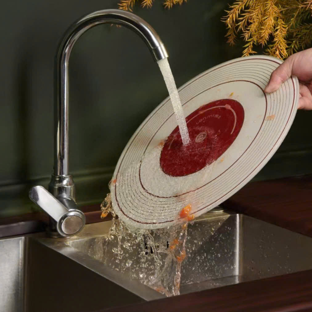 ✨ Đường kính 33cm, đi kèm giá đỡ thông minh có khay thoát nước chống nấm mốc, vừa tiện dụng vừa như món decor trang trí bếp.